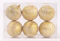 KARÁCSONYI DÍSZ GÖMB BORDÁZOTT, SZETTBEN, PVC DOBOZBAN, 6 DARABOS, ARANY