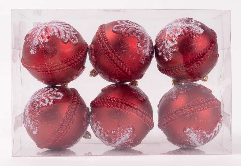 KARÁCSONYI DÍSZ GÖMB LEVÉL MINTÁS, SZETTBEN, PVC DOBOZBAN, 6 DARABOS, ARANY