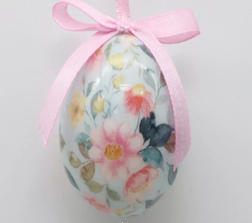 MŰANYAG AKASZTÓS TOJÁS SZETTBEN, 12 DARABOS, PLEXI DOBOZBAN, RÓZSASZÍN ÉS KRÉM VIRÁGOS