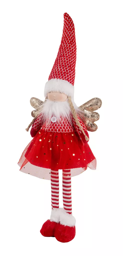 TEXTIL ANGYAL ÁLLÓ, PIROS ÉS FEHÉR, ARANY SZÁRNNYAL