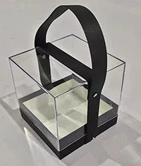 AJÁNDÉK DOBOZ, FÜLLEL, MŰANYAG PLEXI, NÉGYSÖGLETES, FEKETE